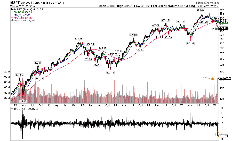 The Takeaway: Microsoft suffered its worst day since 2020, reflecting persistent weakness in software relative to the broader market.