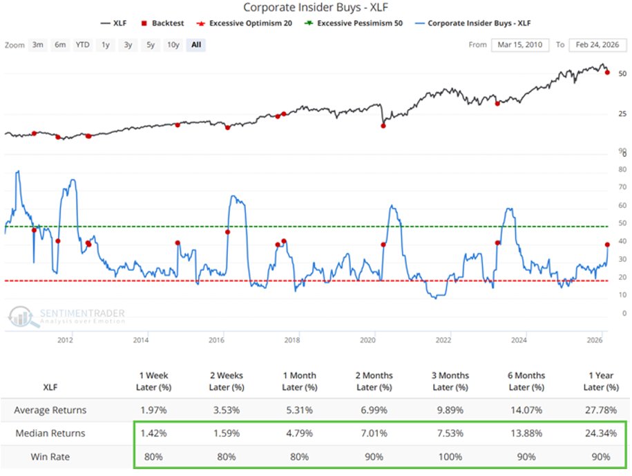 Insiders within the Financial sector have been buying into recent weakness, and historically, they have a pretty good track record.