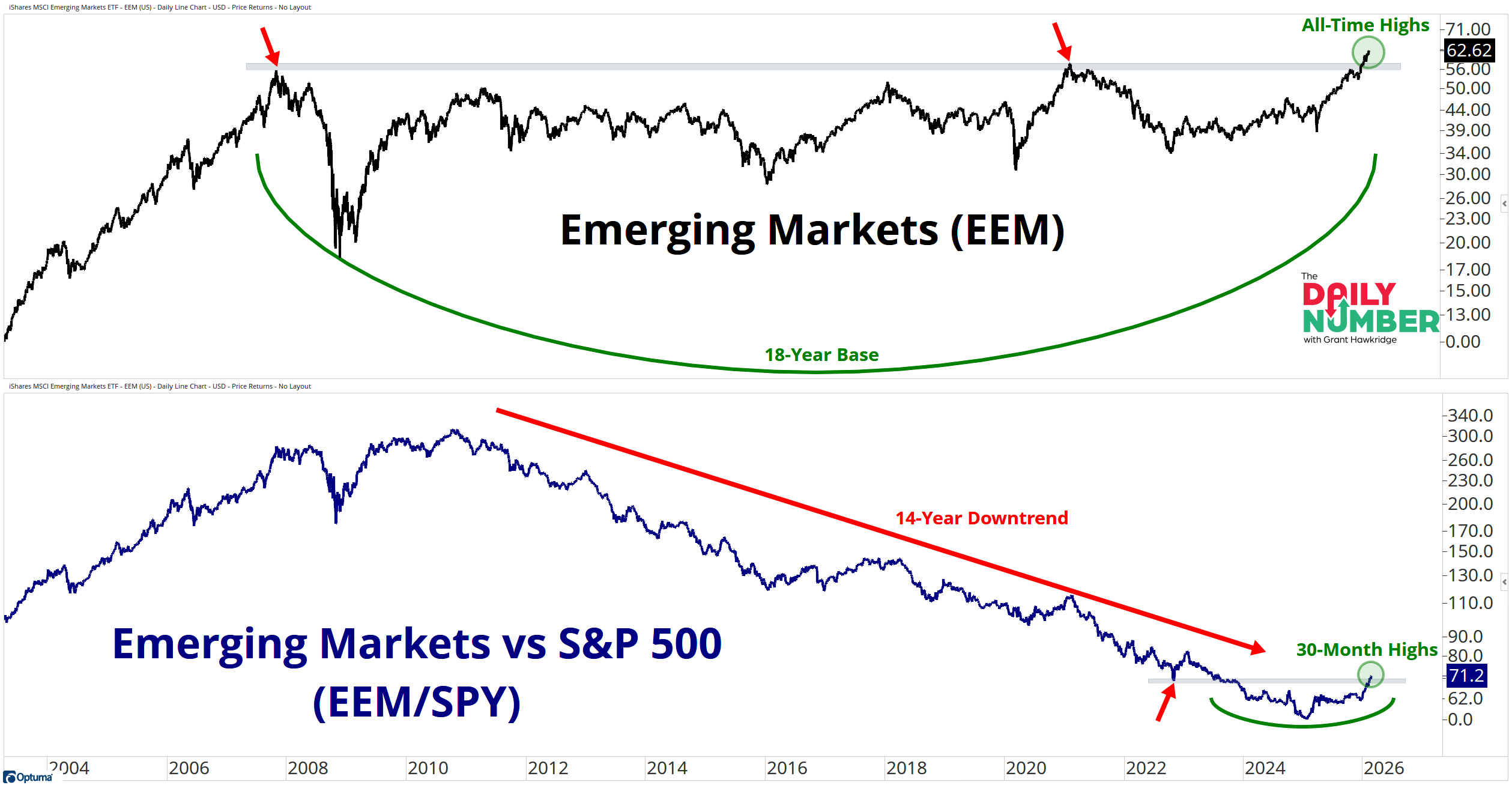 Emerging Markets are resolving higher from an 18-year base while printing new 30-month relative highs versus the S&P 500.