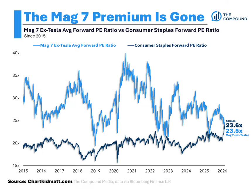 The Mag Seven is currently trading at a discount relative to the marketβs most defensive groups.