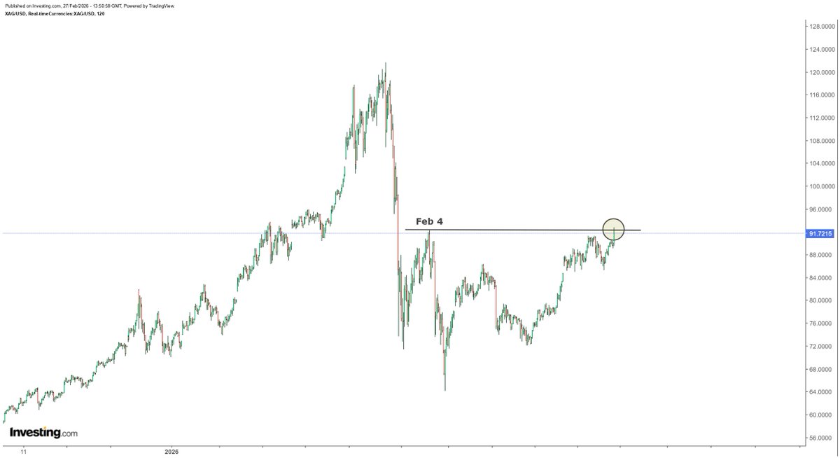 Silver is breaking out of a short term base as it attempts to reclaim losses from the January 30th metals selloff.
