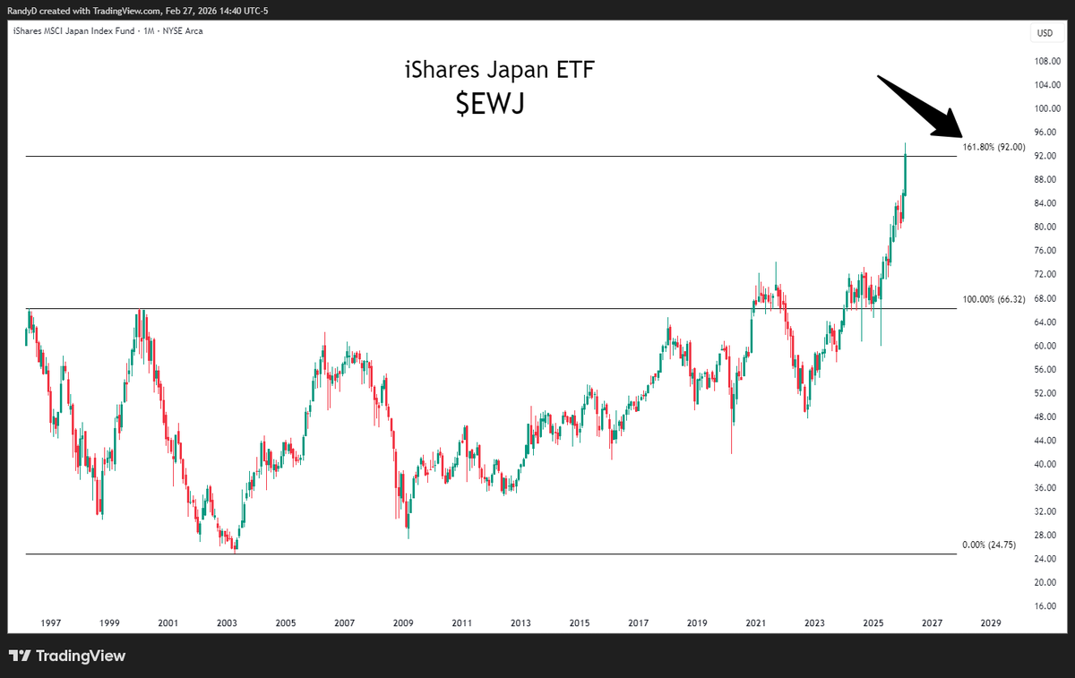 The MSCI Japan Index is tagging its 1.618% extension, a logical place for some digestion.