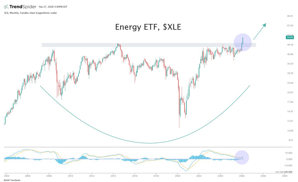 The Energy sector is completing a massive 18-year base while triggering a fresh bullish crossover on the monthly PPO.