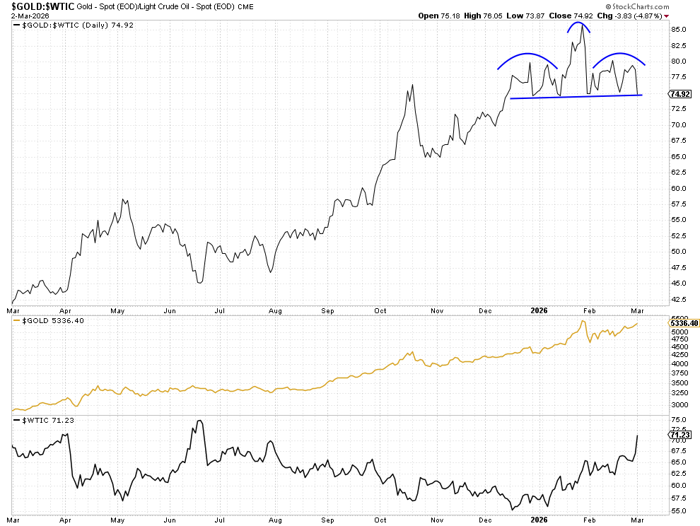The Gold versus Crude Oil ratio has carved out a multi-week head and shoulders top.