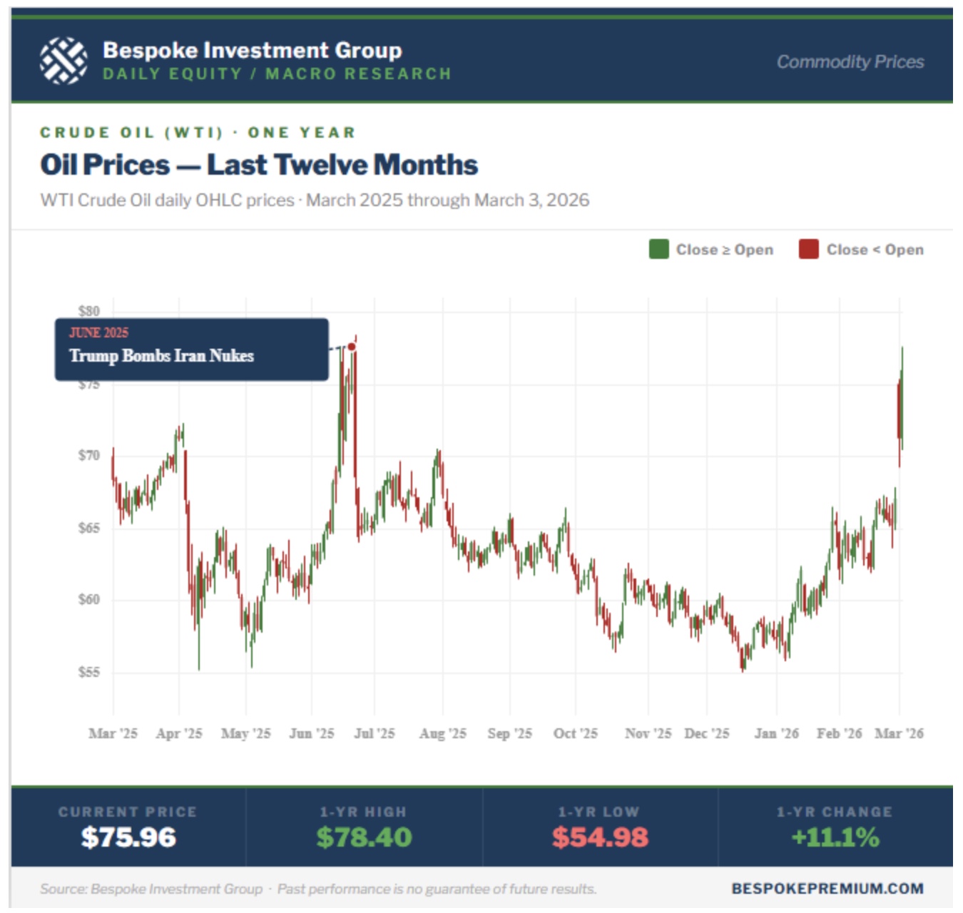Oil prices are near the levels they peaked at last June when the U.S bombed Iran.