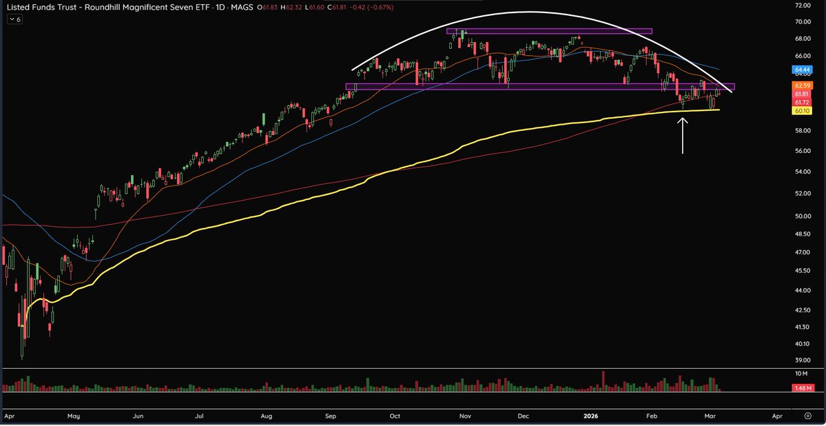 If the Mag Seven loses its April low AVWAP near $60, the group could begin to weigh on the broader market.