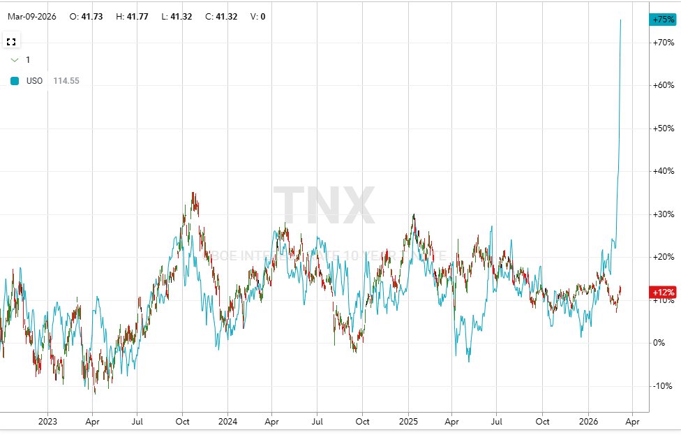 Despite the historic surge in oil, yields have stayed relatively flat.