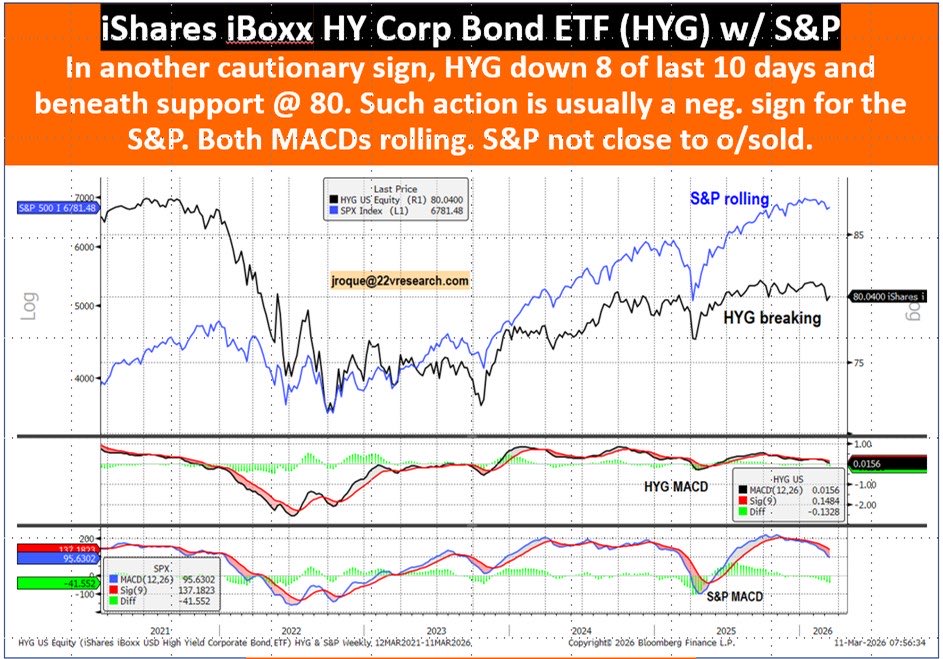 High Yield Corporate Bonds have dropped in 8 of the last 10 sessions, and have broken below $80 support.