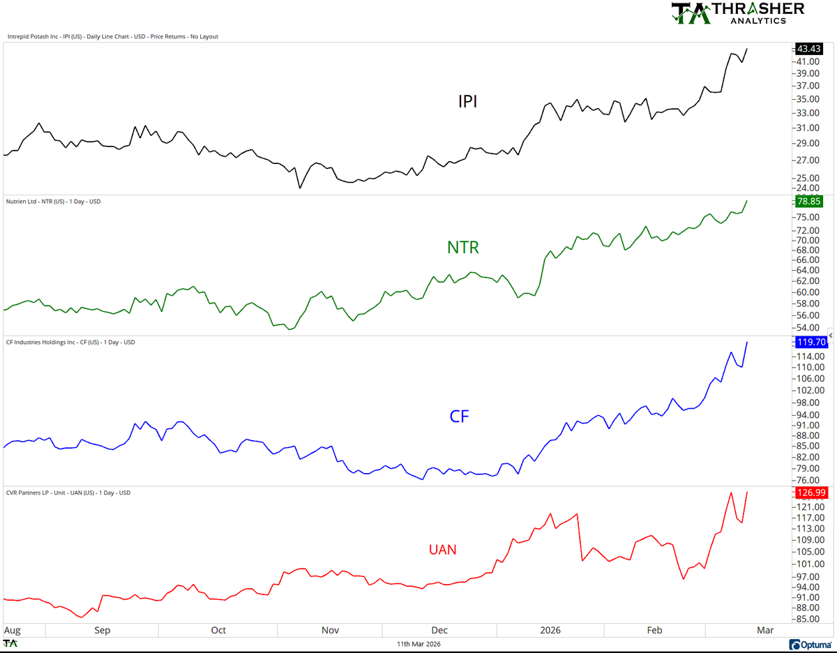 Fertilizer stocks are making new multi-year highs.
