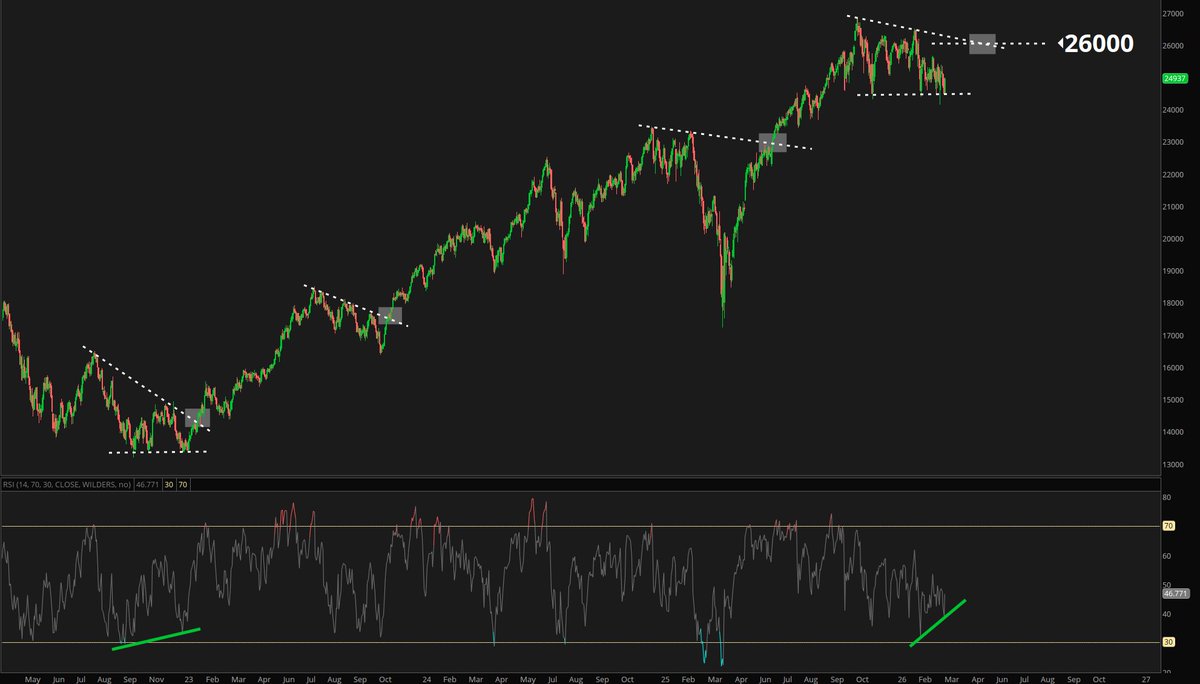 The Nasdaq continues to hold support near 24,000, with a move back above 26,000 potentially signaling the next leg higher.