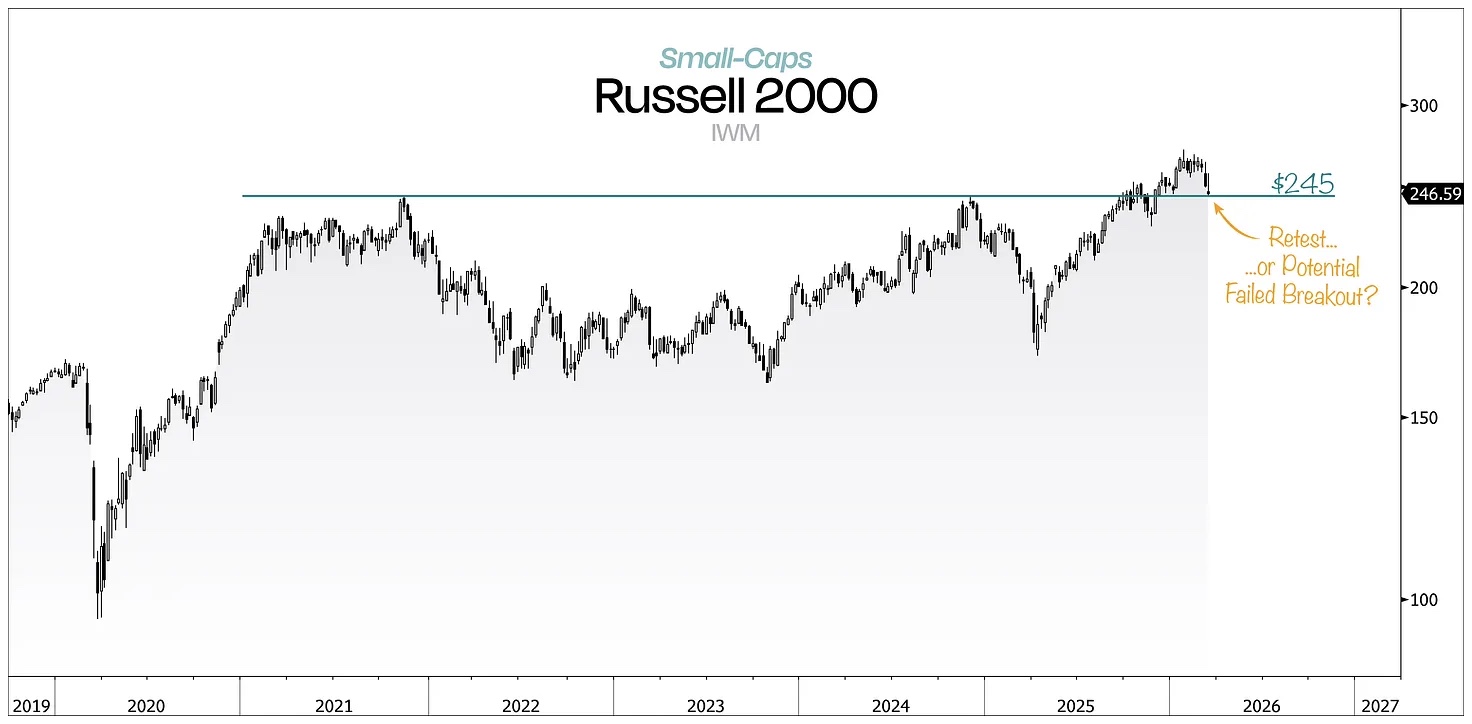 This resembles a classic breakout-retest for the Russell 2000, with the potential to also become a failed breakout.