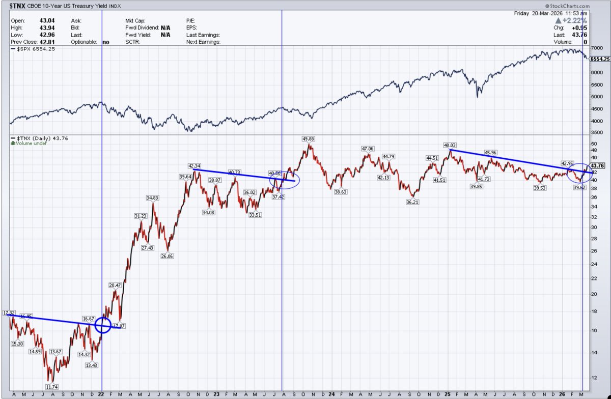 A breakout in the 10-Year Yield historically corresponds with a challenging environment for equities.