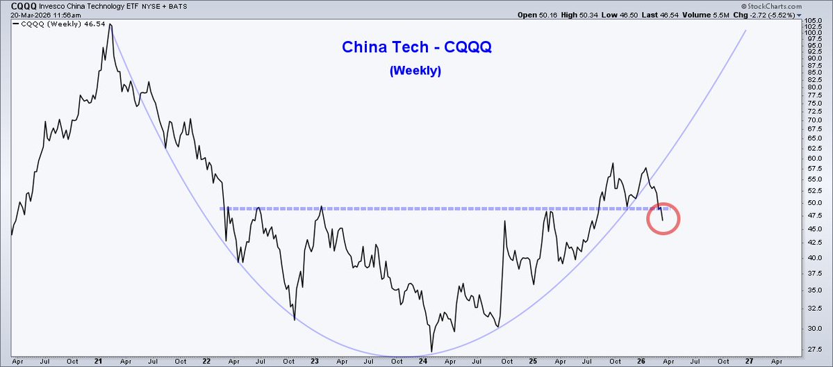 Chinese Tech stocks suffered a big failed breakout at the polarity level of roughly $50.