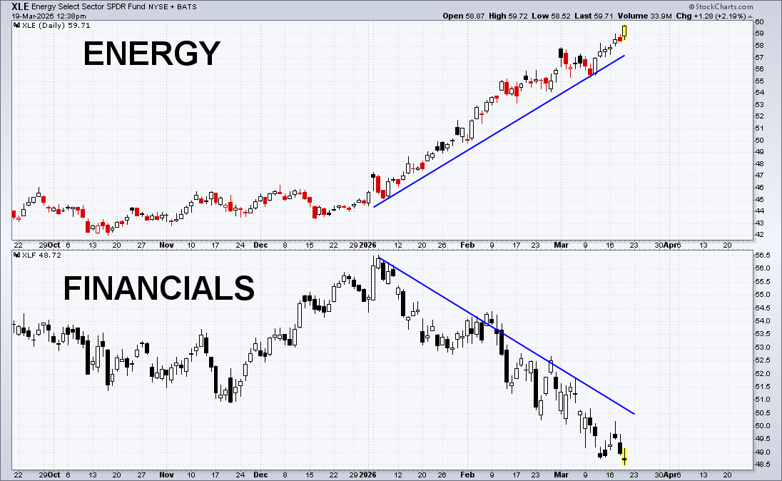 Financials rolled over just as Energy began its powerful rally.