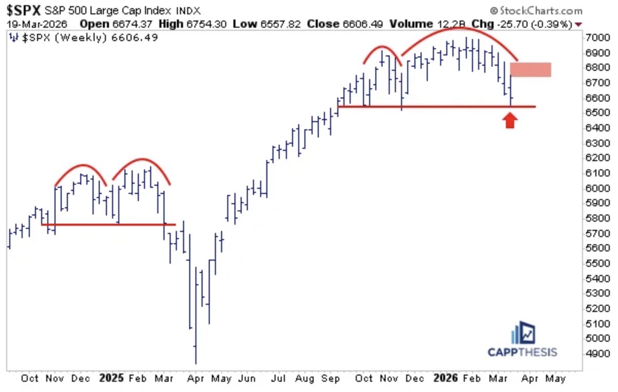 Any rally that fails and forms a lower high would reinforce a larger bearish pattern taking shape in the S&P 500.
