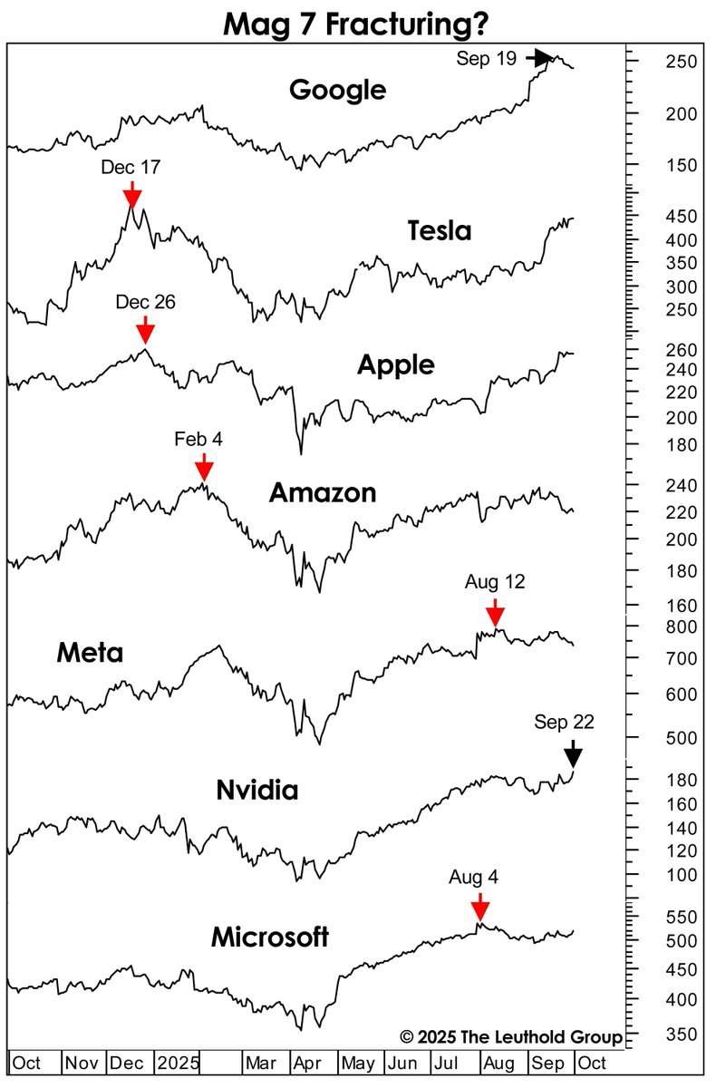 The Takeaway: Some of the largest stocks in the S&P 500 have been absent during the recent melt-up. A broad advance from the Mag 7 would be ideal, but rotation among them could also keep the bull in motion.