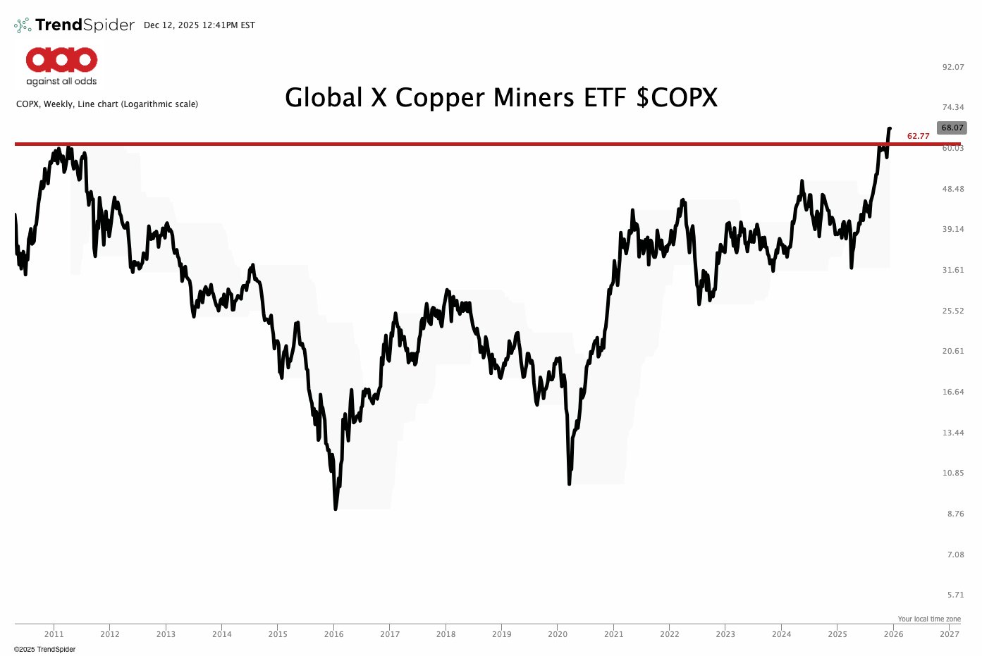 The Takeaway: Copper Miners ($COPX) could leg higher in 2026 after completing a massive 15-year base.