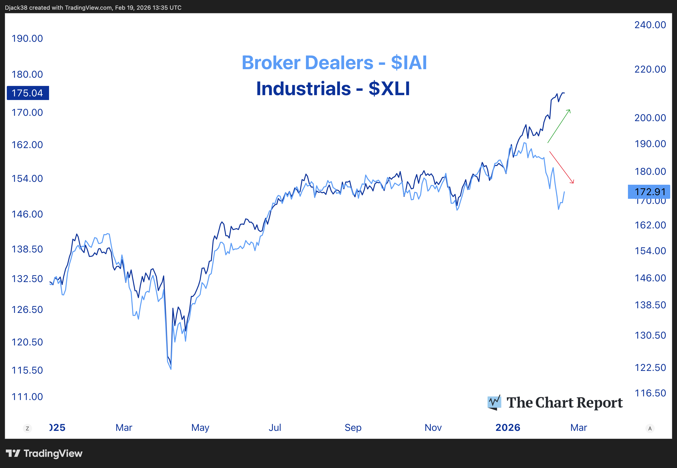 Today we're examining the divergence between broker dealers and the Industrials sector.