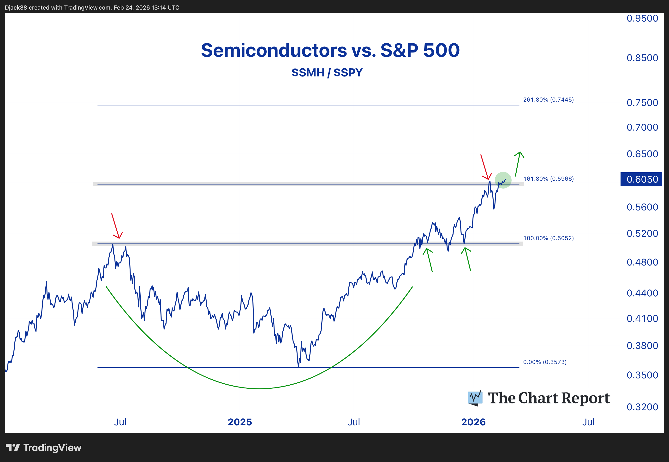 Just yesterday, semiconductors closed at new all-time highs relative to the S&P 500.