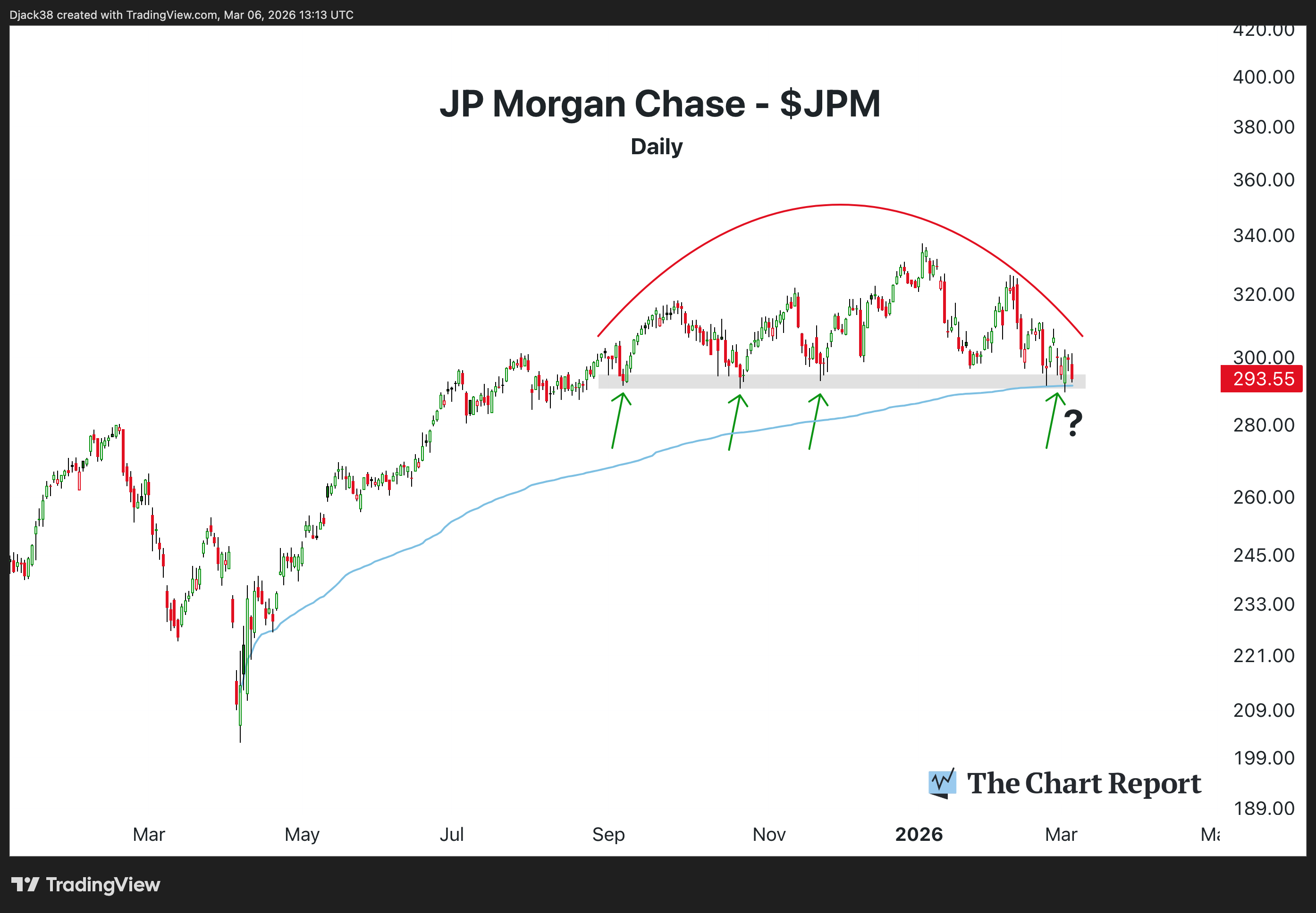 And right now, JPMorgan Chase ($JPM) is testing the lower boundary of this potential intermediate top.