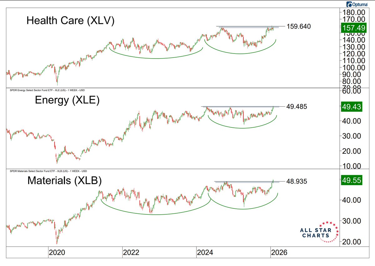 - The three major value sectors are all setting up for structural breakouts, led by Materials ($XLB) after registering new all-time highs today.