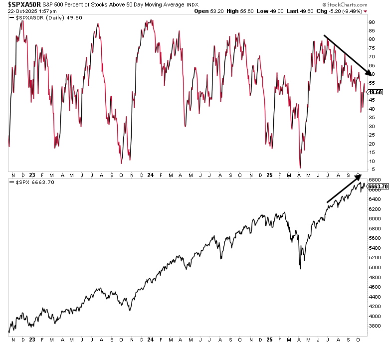 - Divergences can persist for a while before they matter, and Mega-Caps can mask broad weakness within the S&P 500. But, narrowing breadth isn't a characteristic of a healthy uptrend.