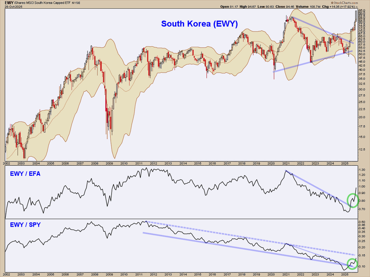 - U.S. stocks are having another solid year, but international markets are broadly outperforming for the first time in more than a decade. South Korea has been the strongest of them all, with $EWY up +90% YTD.