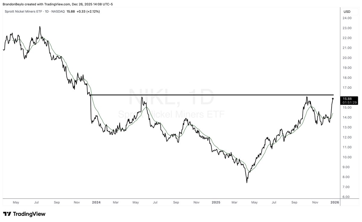 - Brandon points out that Nickel has been quietly building strength, with the Nickel Miners ETF ($NIKL) closing at new 52-week highs this week.